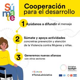 En el marco del 25 de noviembre y  los 16 días de activismo la Iniciativa Spotlight en El Salvador como parte de su campaña y estrategia de comunicación SÚMATE comparte una serie de hojas informativas con acciones específicas para invitar a diversos sectores de sociedad Civil a promover una cultura de cero tolerancia a la violencia contra las mujeres, adolescentes y las niñas.